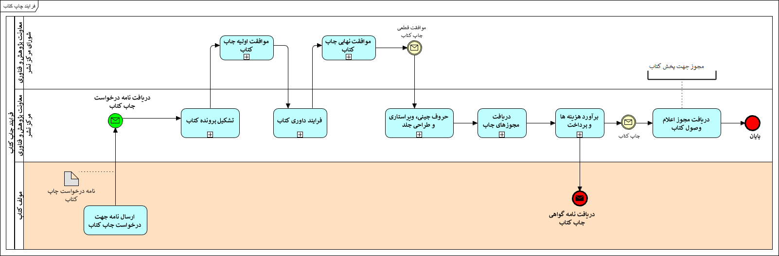 پس از دریافت درخواست چاپ کتاب توسط مرکز نشر فرایند به صورت زیر طی خواهد شد.