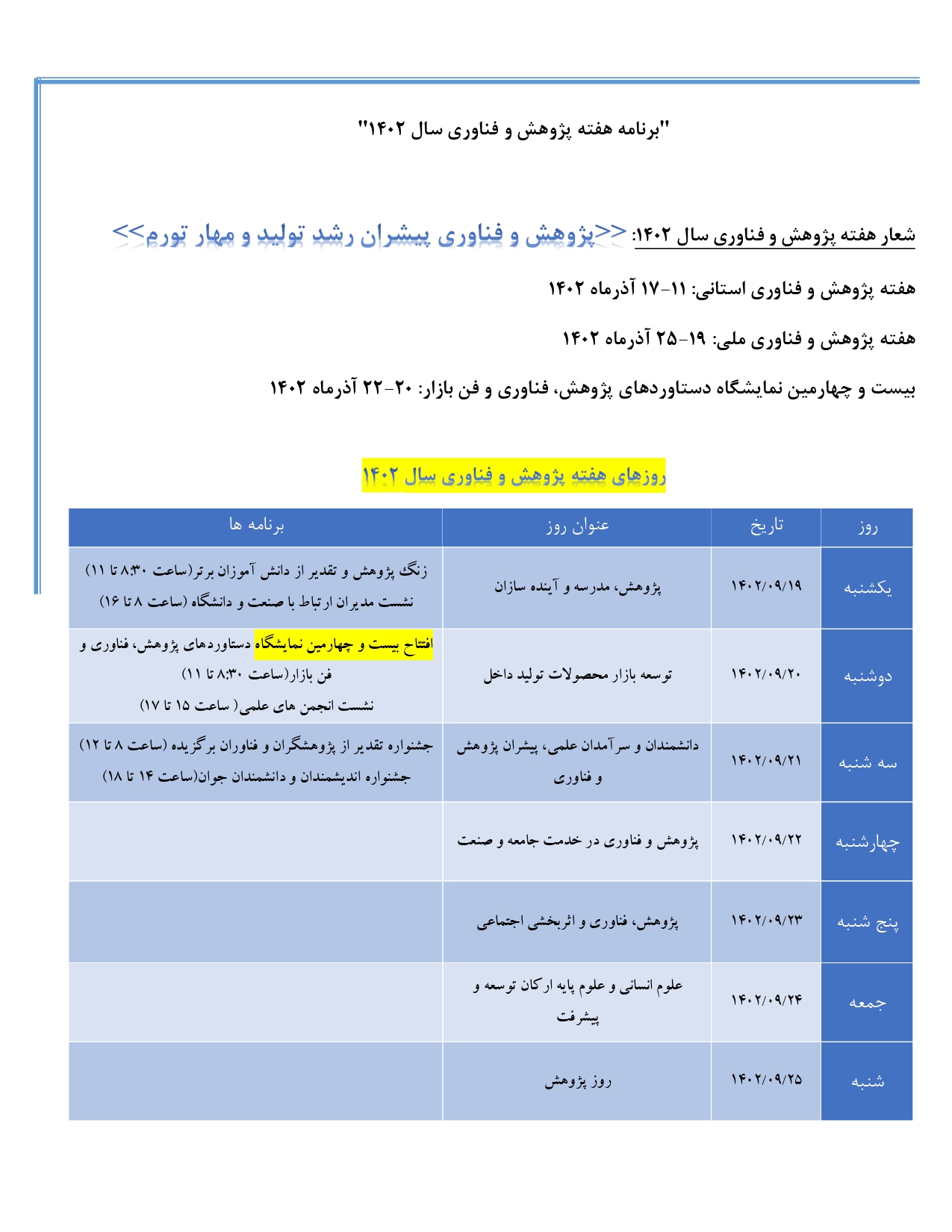 جشنواره برگزیدگان پژوهش و فناوری استان هرمزگان (1402)