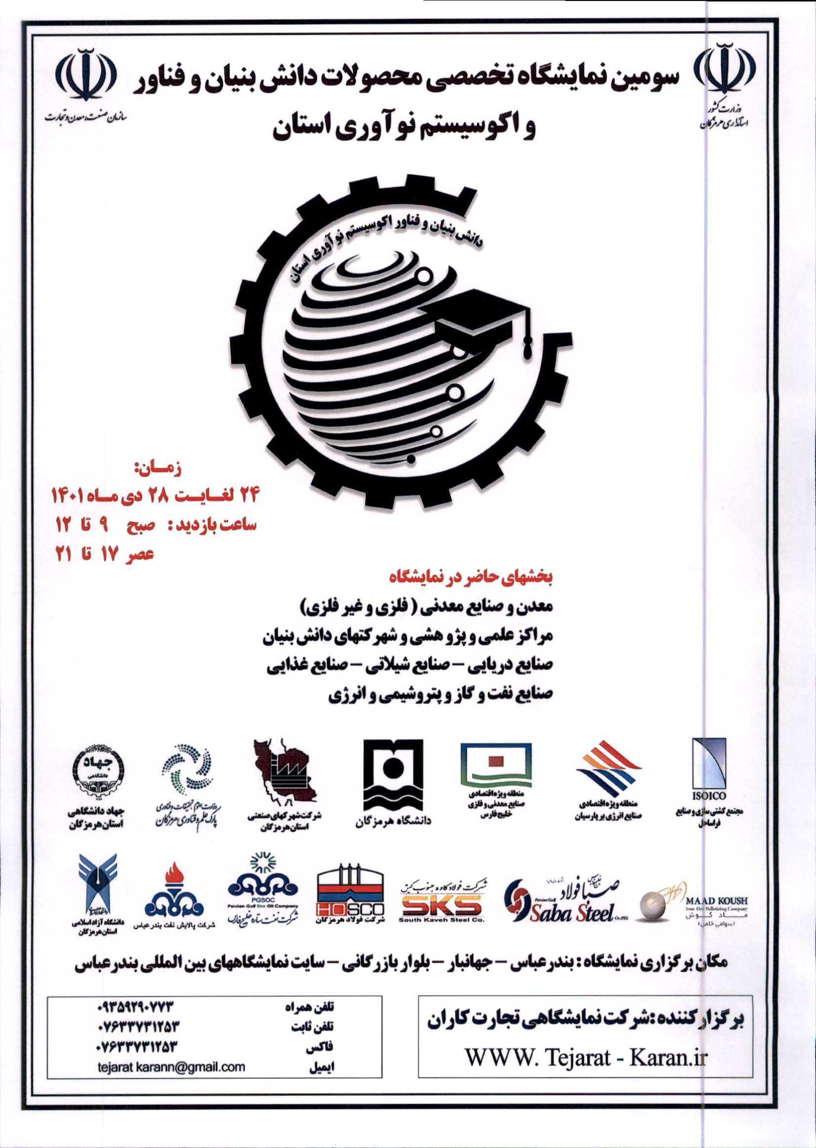 برنامه ریزی و برگزاری پنل های تخصصی در سومین نمایشگاه تخصصی محصولات دانش بنیان و فناور و اکوسیستم نوآوری استان توسط دانشگاه هرمزگان