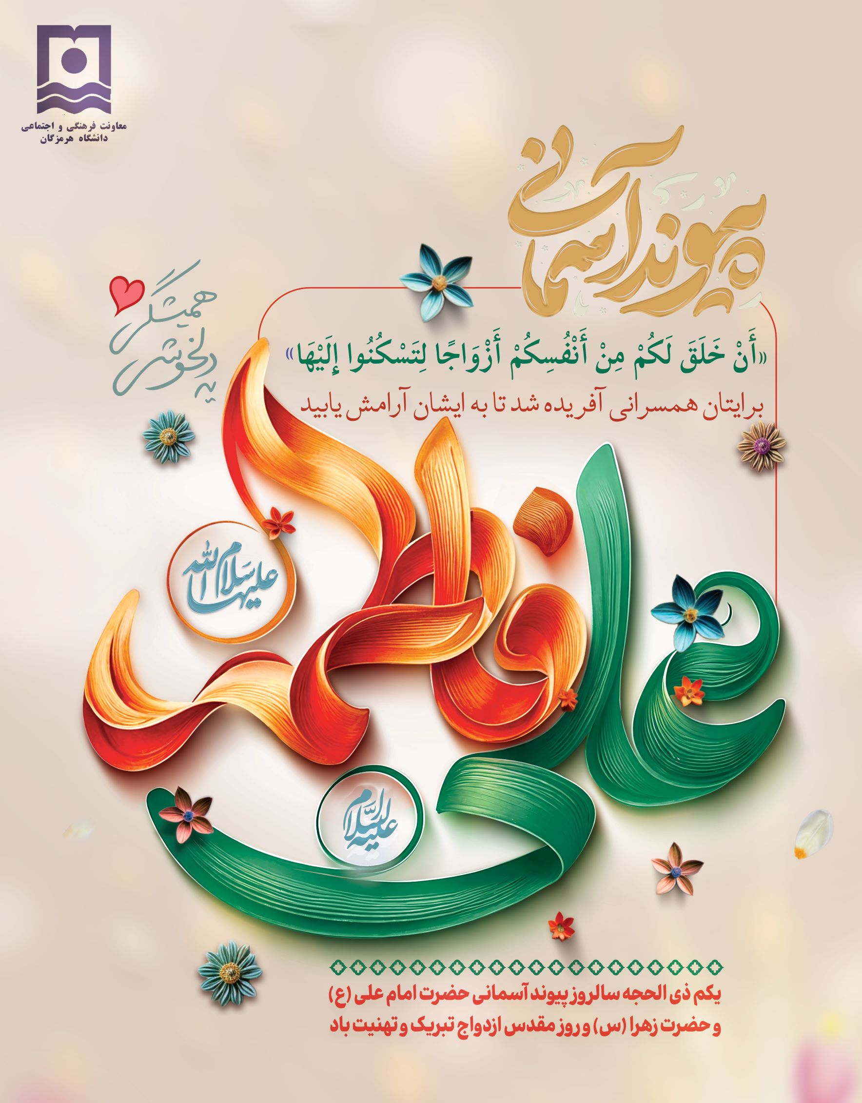 پیام معاون فرهنگی و اجتماعی دانشگاه هرمزگان به مناسبت فرا رسیدن سالروز پیوند آسمانی حضرت علی (ع) و حضرت فاطمه (س):
