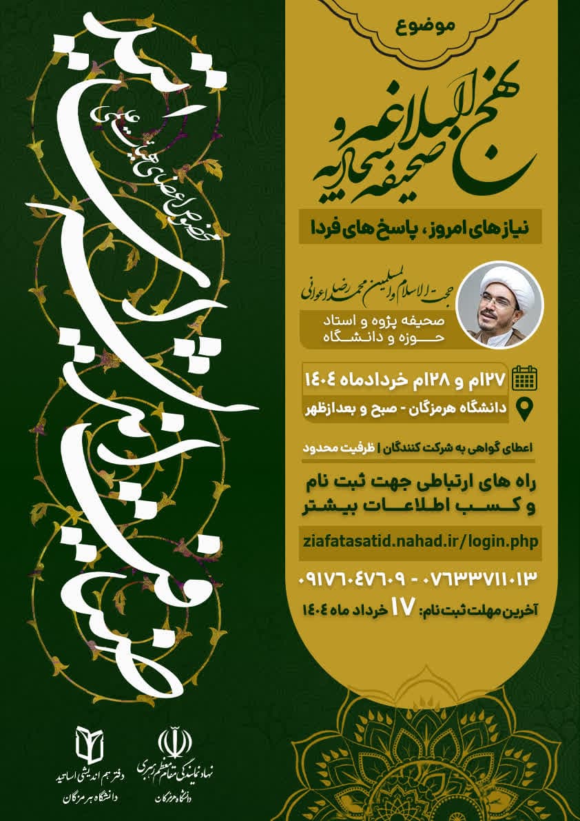 نهاد نمايندگي مقام معظم رهبري در دانشگاه هرمزگان برگزار می‌نماید: