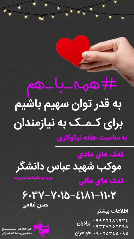 به مناسبت هفته نیکوکاری به قدر توان سهیم باشیم برای کمک به نیازمندان