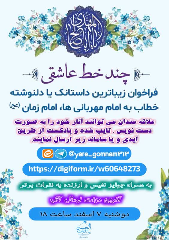 فراخوان زیباترین داستانک یا دل‌نوشته خطاب به امام مهربانی ها، امام زمان (عج)