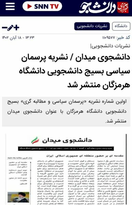 اولین شماره نشریه پرسمان سیاسی و مطالبه گری بسیج دانشجویی دانشگاه هرمزگان با عنوان دانشجوی میدان منتشر شد.