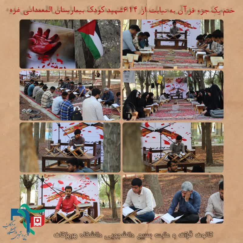 برگزاری مراسم ختم یک جزء قرآن کریم به نیابت از کودکان مظلوم غزه در بیمارستان المعمدانی