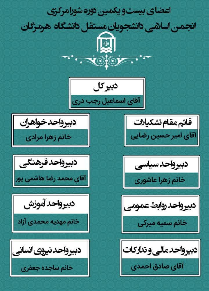اعضای بیست و یکمین دوره شورای مرکزی انجمن اسلامی دانشجویان مستقل دانشگاه هرمزگان