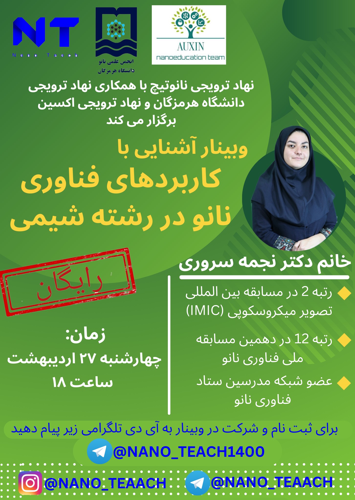 انجمن علمی بین رشته ای فناوری نانو دانشگاه هرمزگان با همکاری نانو تیچ برگزار می‌کند
