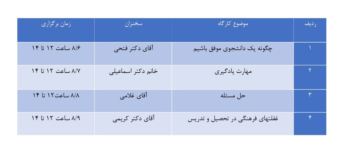 ساعت برگزاری کارگاه‌ها 12  الی 13