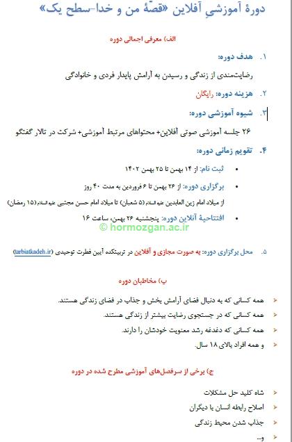 دورۀ آموزشیِ  قصّۀ من و خدا-سطح یک