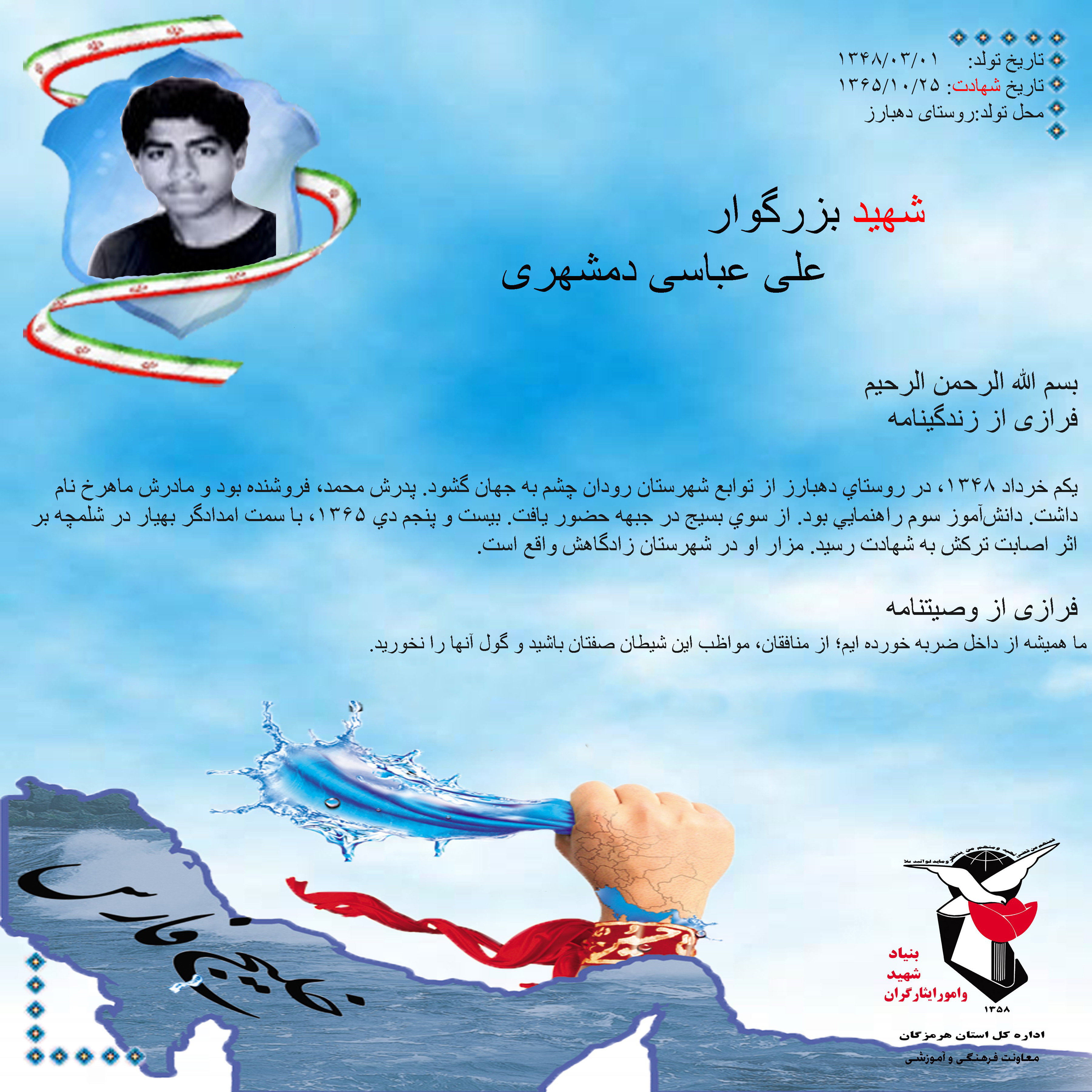 فرازی از زندگینامه و وصیتنامه شهید بزرگوار علی عباسی دمشهری