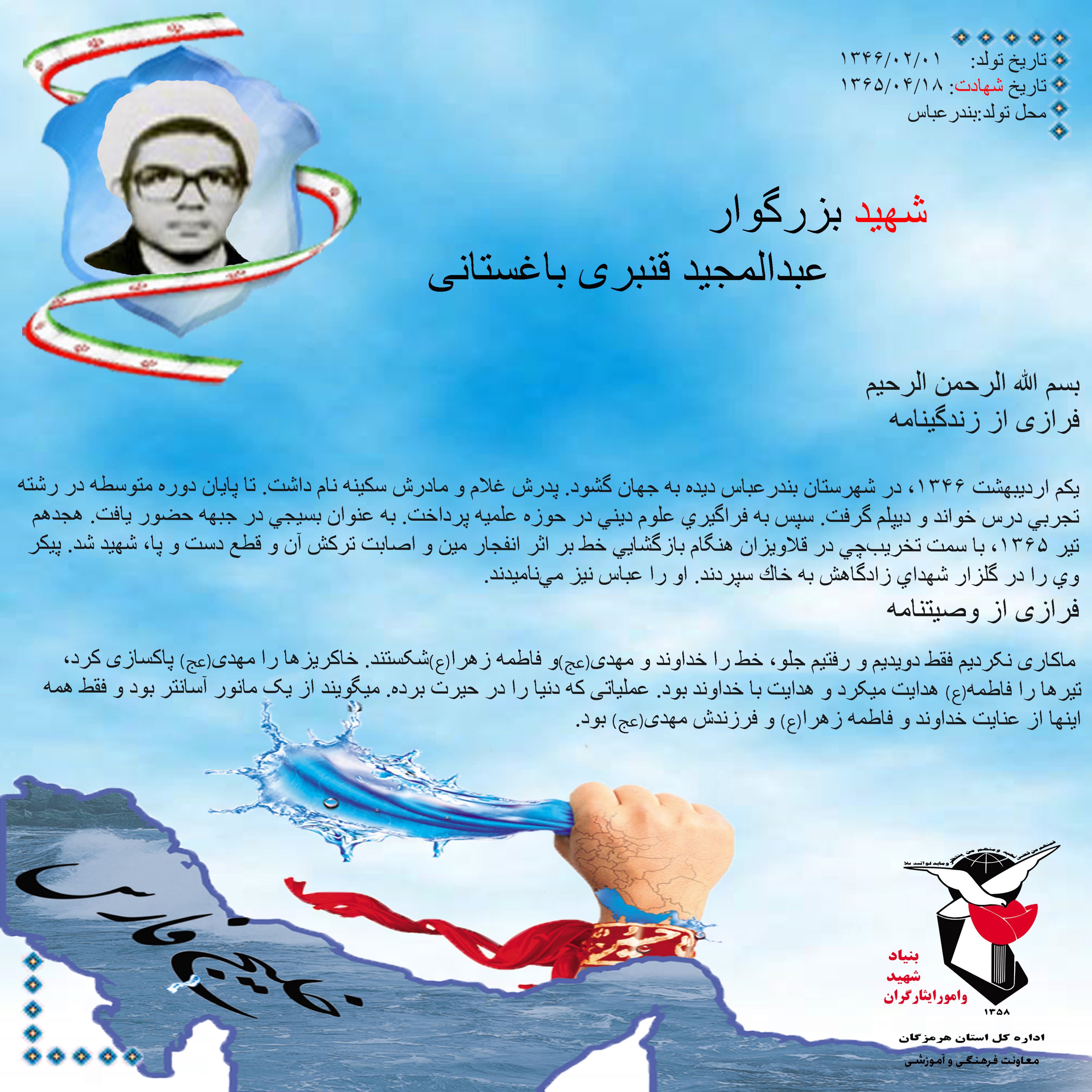 فرازی از زندگینامه و وصیتنامه شهید بزرگوار عبدالمجید قنبری باغستانی