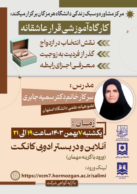 مرکز مشاوره و سبک زندگی دانشگاه هرمزگان برگزار می کند.