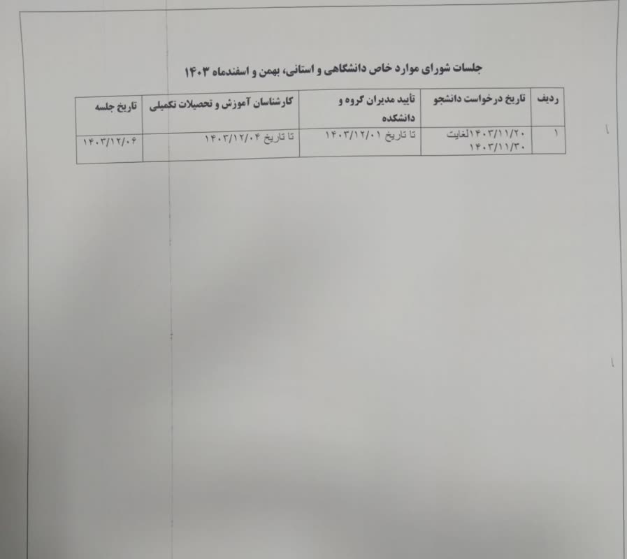 جلسات شورای موارد خاص دانشگاهی و استانی بهمن و اسفندماه 1403