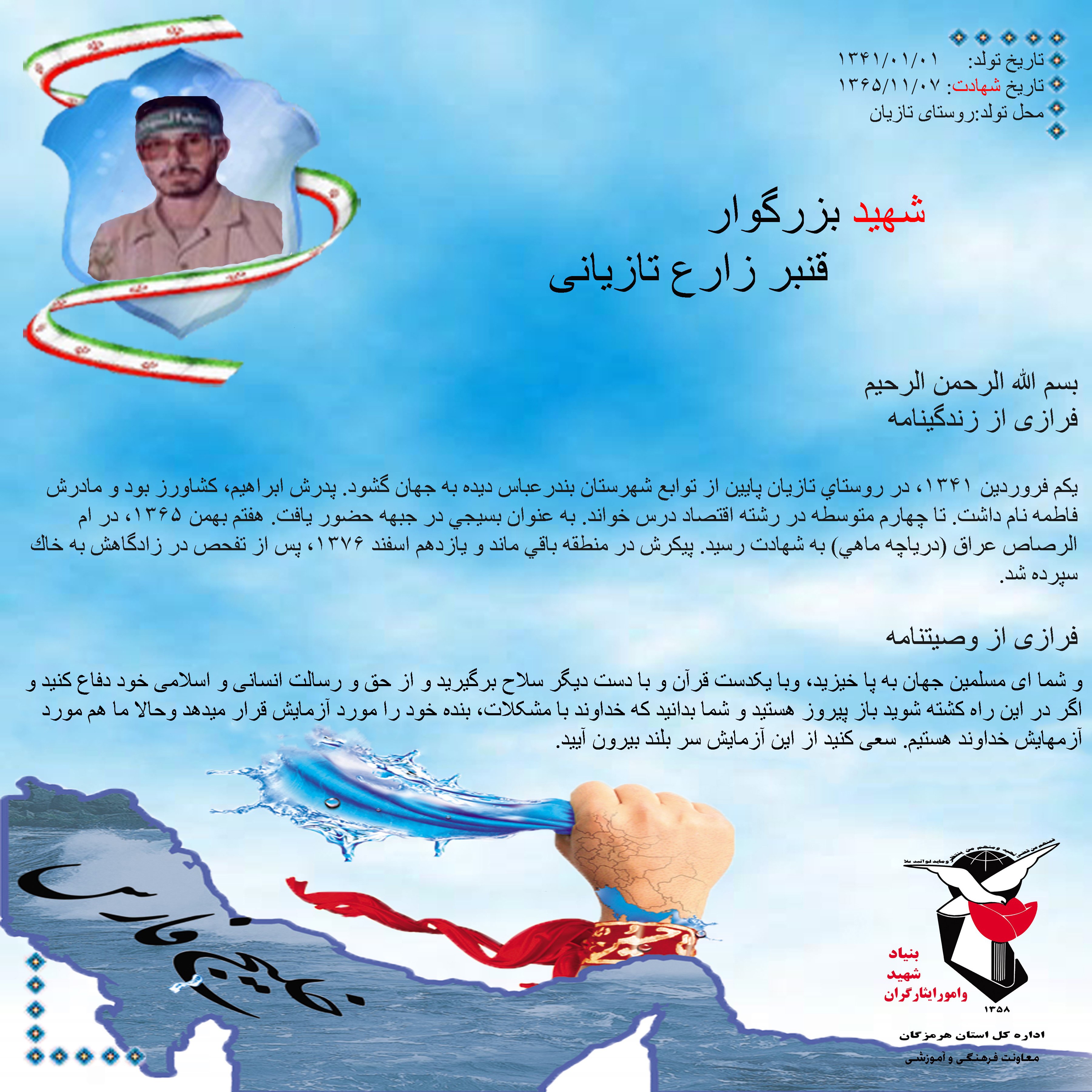 فرازی از زندگینامه و وصیتنامه شهید بزرگوار قنبر زارع تازیانی
