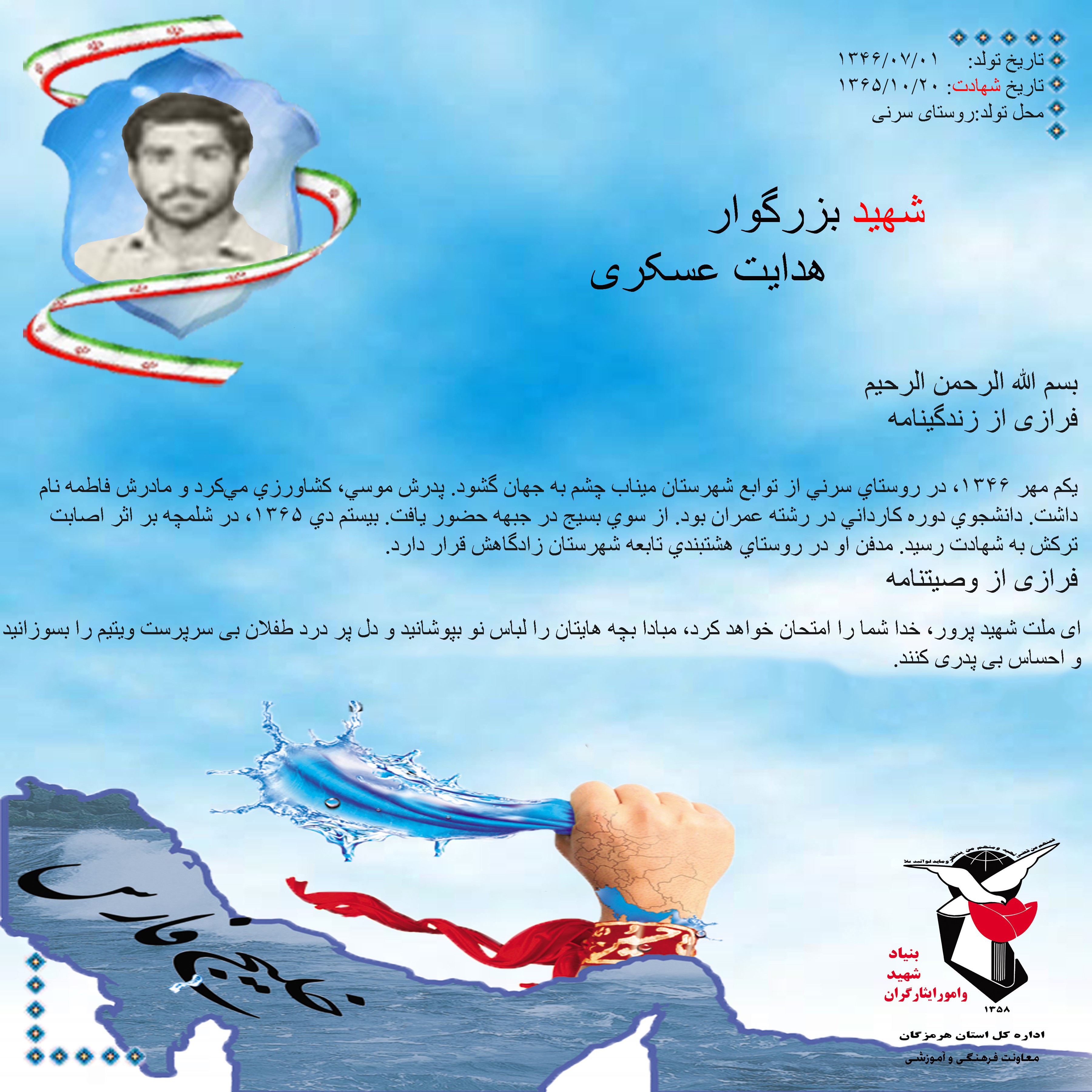 فرازی از زندگینامه و وصیتنامه شهید بزرگوار هدایت عسکری