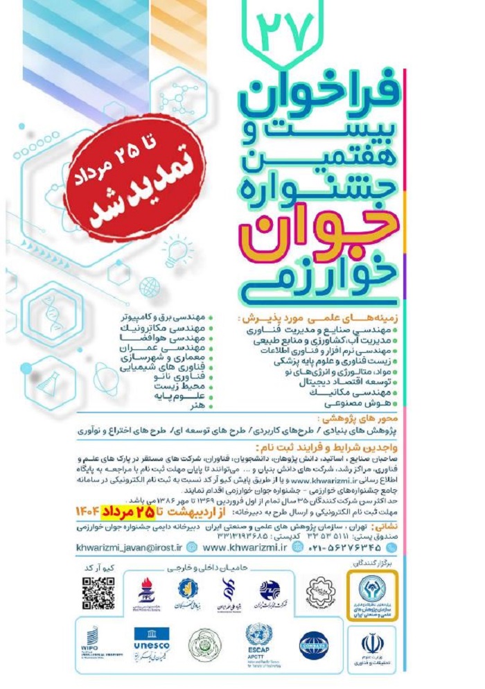 تمدید مهلت ثبت نام بیست و هفتمین جشنواره جوان خوارزمی