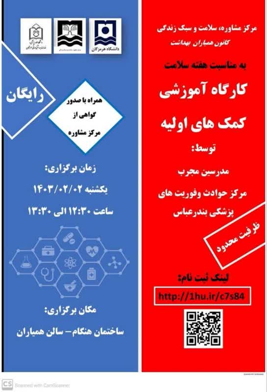 مرکز مشاوره،سلامت و سبک زندگی دانشگاه هرمزگان برگزار می کند.