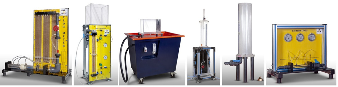 • آزمایشگاه مکانیک سیالات: بررسی تئوری برنولی، پمپ­های سری و موازی، افت فشار در سیستم لوله و اتصالات، جریان مایعات از اورفیس، دبی سنجی، رینولدز، دستگاه ضربه جت، کاویتاسیون، دستگاه مرکز فشار هیدرواستاتیکی، کشش سطحی، ضربه قوچ، ونتوری­متر، آزمایش سررریز،
