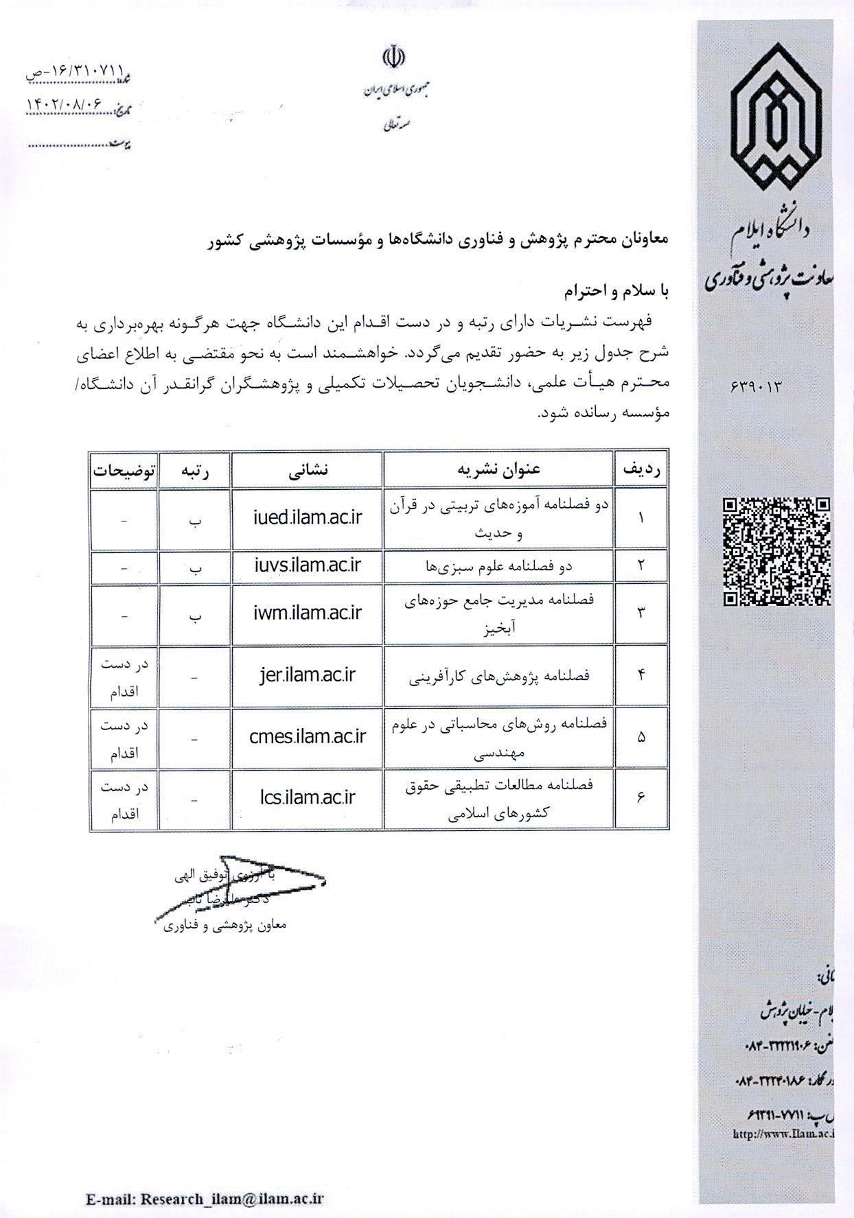 معرفی نشریات دانشگاه ایلام( جهت اطلاع دانشجویان تحصیلات تکمیلی)