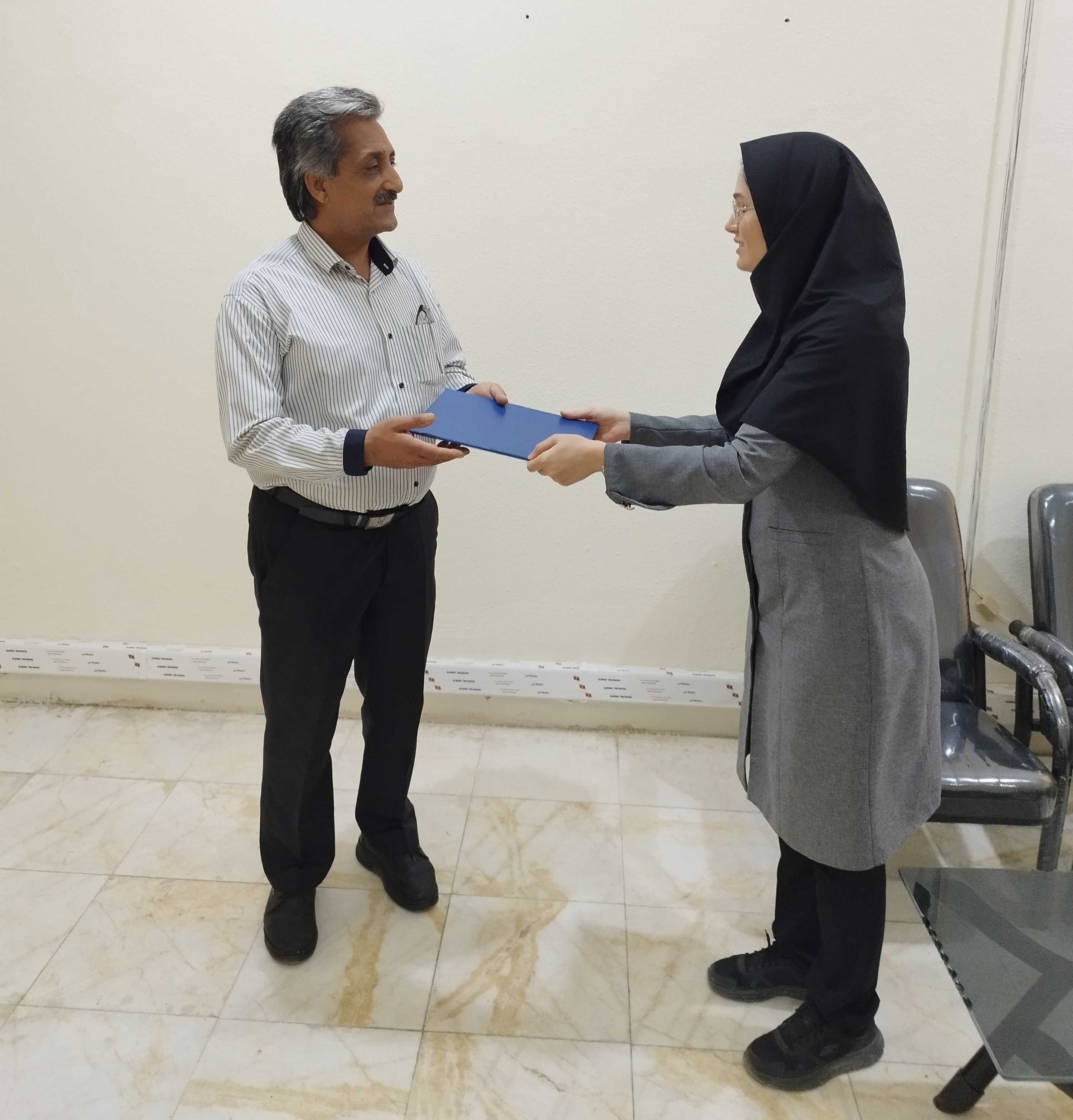تقدیر خانم دکتر اکبری از جناب آقای علیمردانی رئیس محترم اداره تغذیه