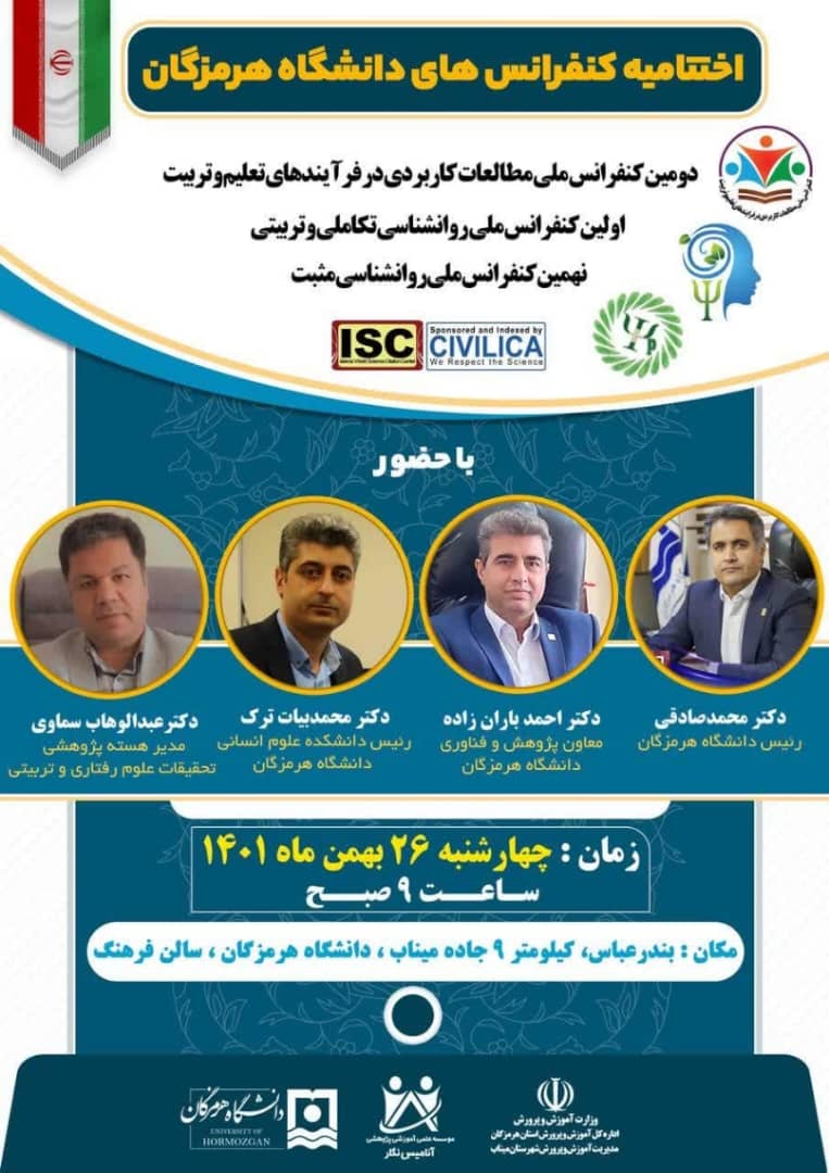 اختتامیه کنفرانس های دانشگاه هرمزگان (در بخش مشاوره و روانشناسی و علوم تربیتی)