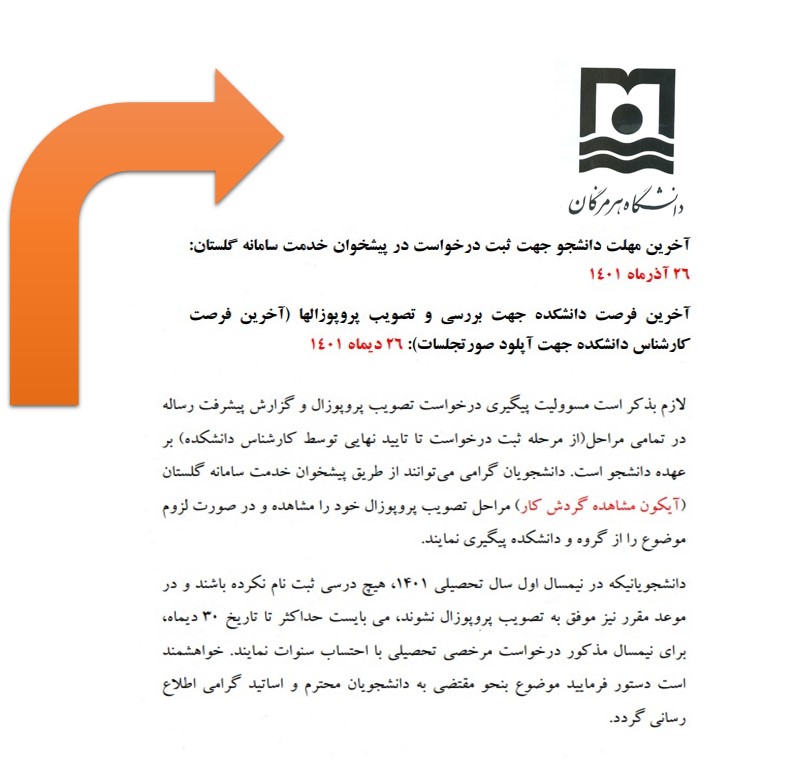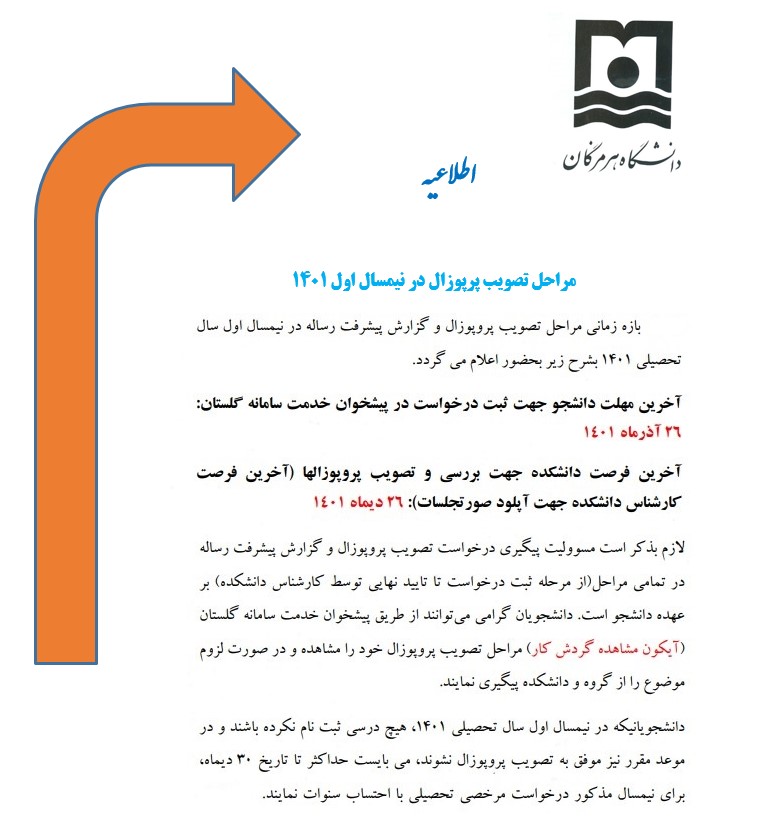 بازه زمانی مراحل تصویب پرپوزال در نیمسال اول تحصیلی 401