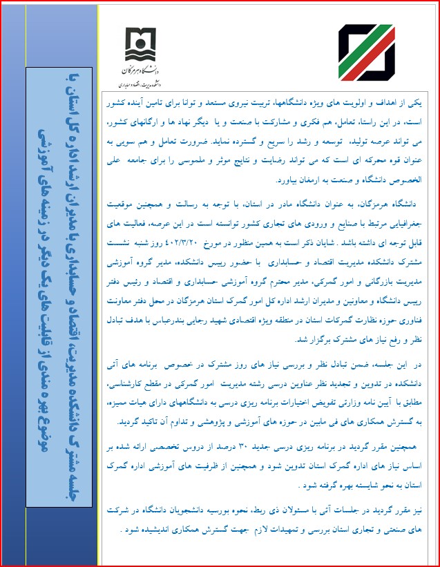 نشست مشترک دانشکده مدیریت، اقتصاد و حسابداری با مدیران و معاونین ارشد گمرک استان هرمزگان