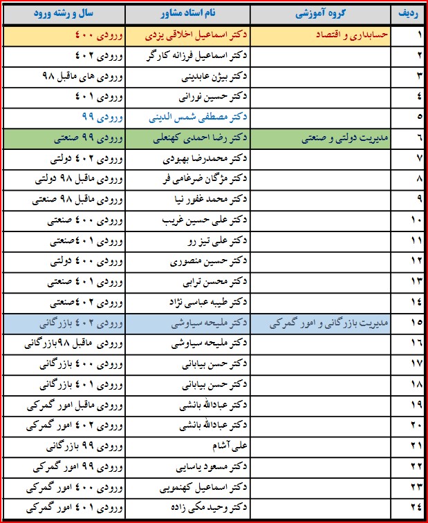 اعضا هیأت علمی گروه مدیریت بازرگانی