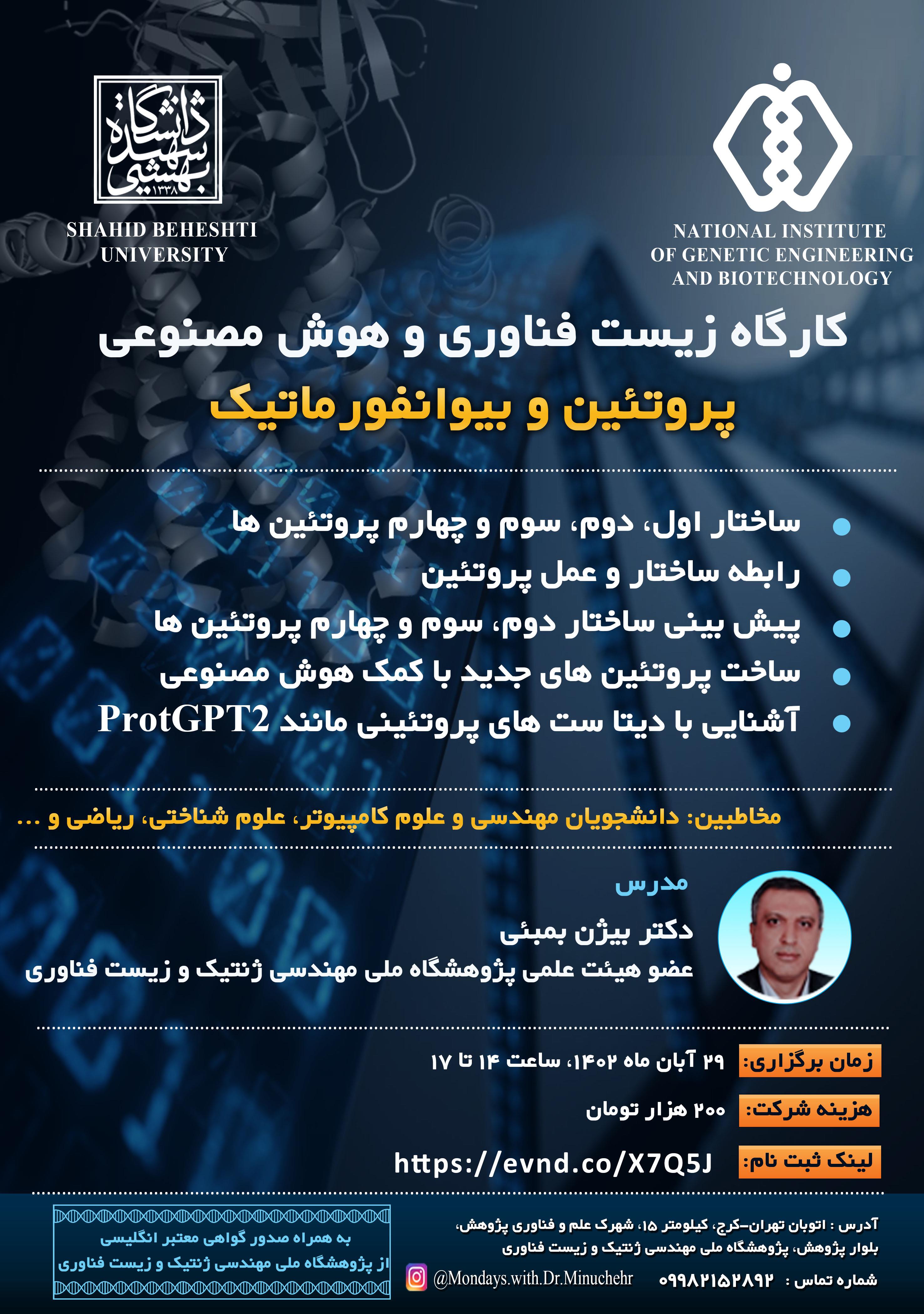برگزاری کارگاه زیست فناوری و هوش مصنوعی پروتئین و بیوانفورماتیک