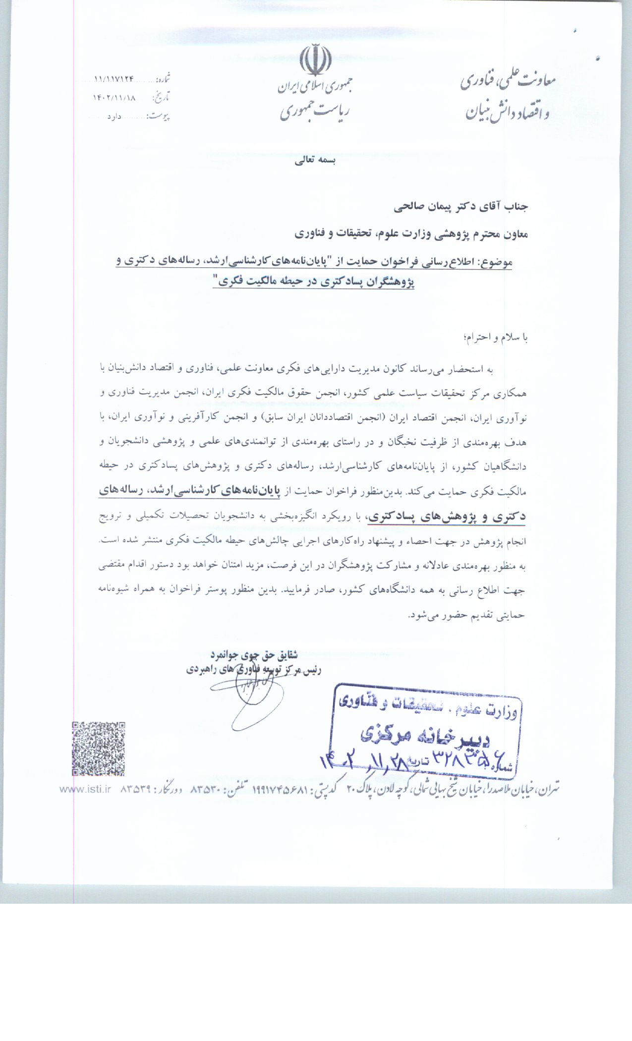 اولین فراخوان حمایت از پایان نامه ها و رساله های تحصیلات تکمیلی