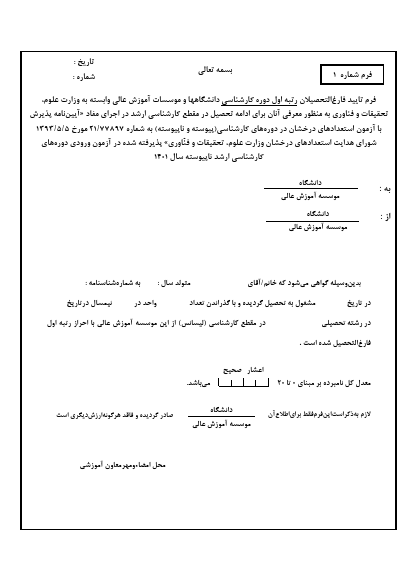 فرم های ثبت نام دانشجویان کارشناسی ارشد