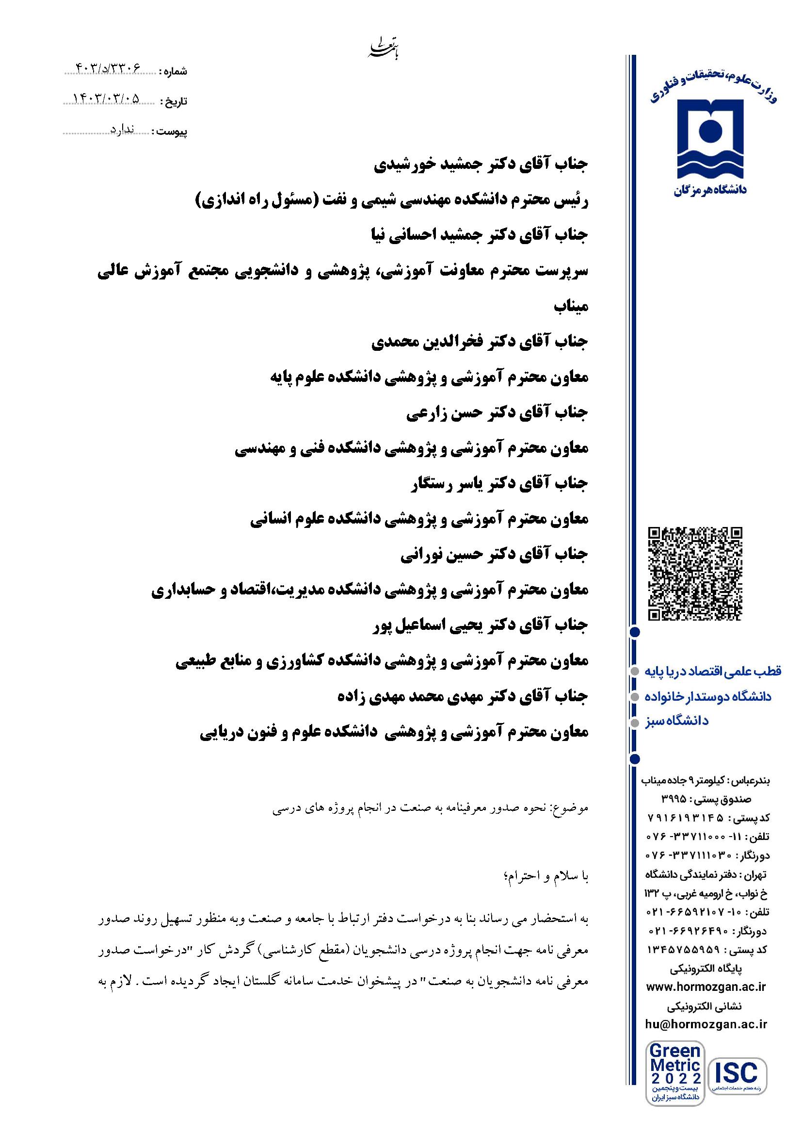 تسهیل روند صدور معرفی نامه دانشجویان به صنعت در انجام پروژه های درسی