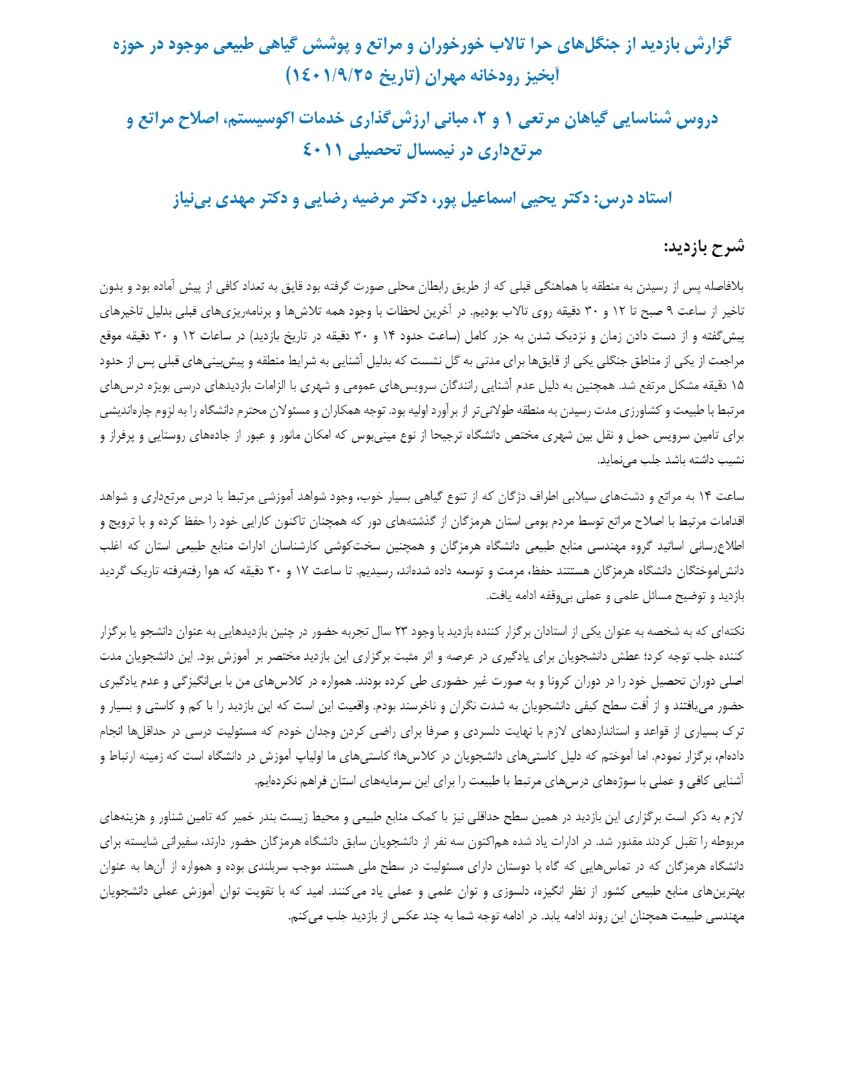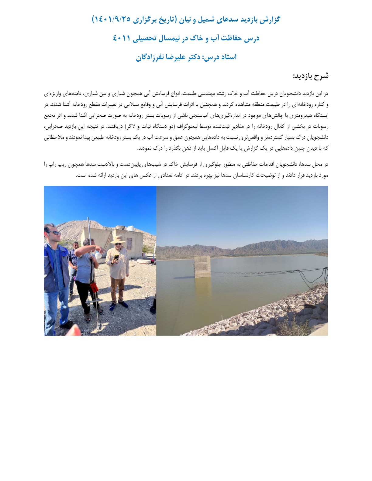 بازدید های علمی گروه مهندسی منابع طبیعی در نیمسال اول تحصیلی4011