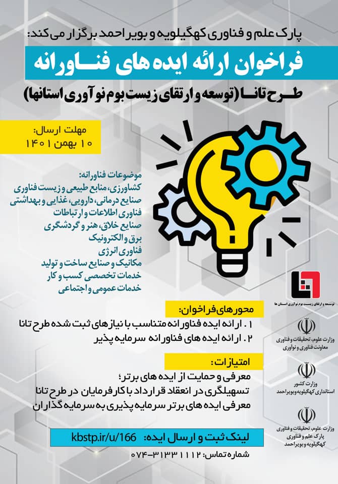 فراخوان ارائه ایده های فناورانه طرح تانا(پارک علم و فناوری کهگیلویه و بویر احمد)