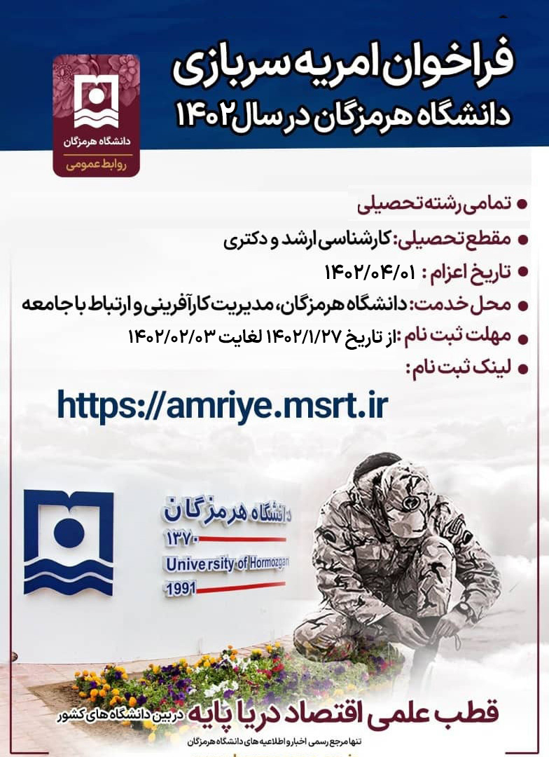 فراخوان امریه سربازی دانشگاه هرمزگان در سال 1402