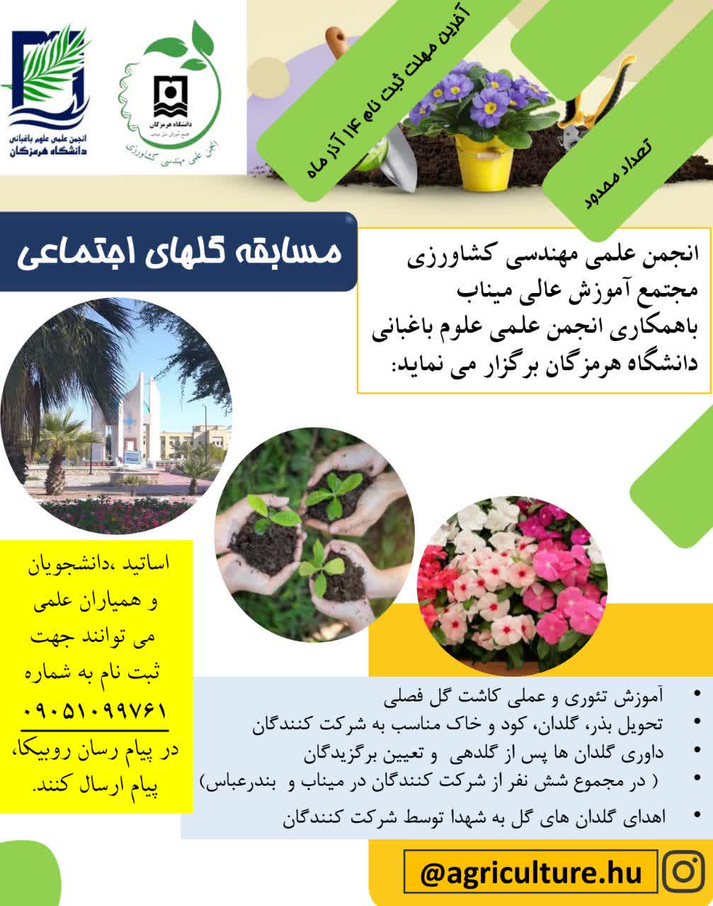 انجمن علمی مهندسی کشاورزی مجتمع آموزش عالی میناب با همکاری انجمن علمی علوم باغبانی دانشگاه هرمزگان برگزار می نماید:
