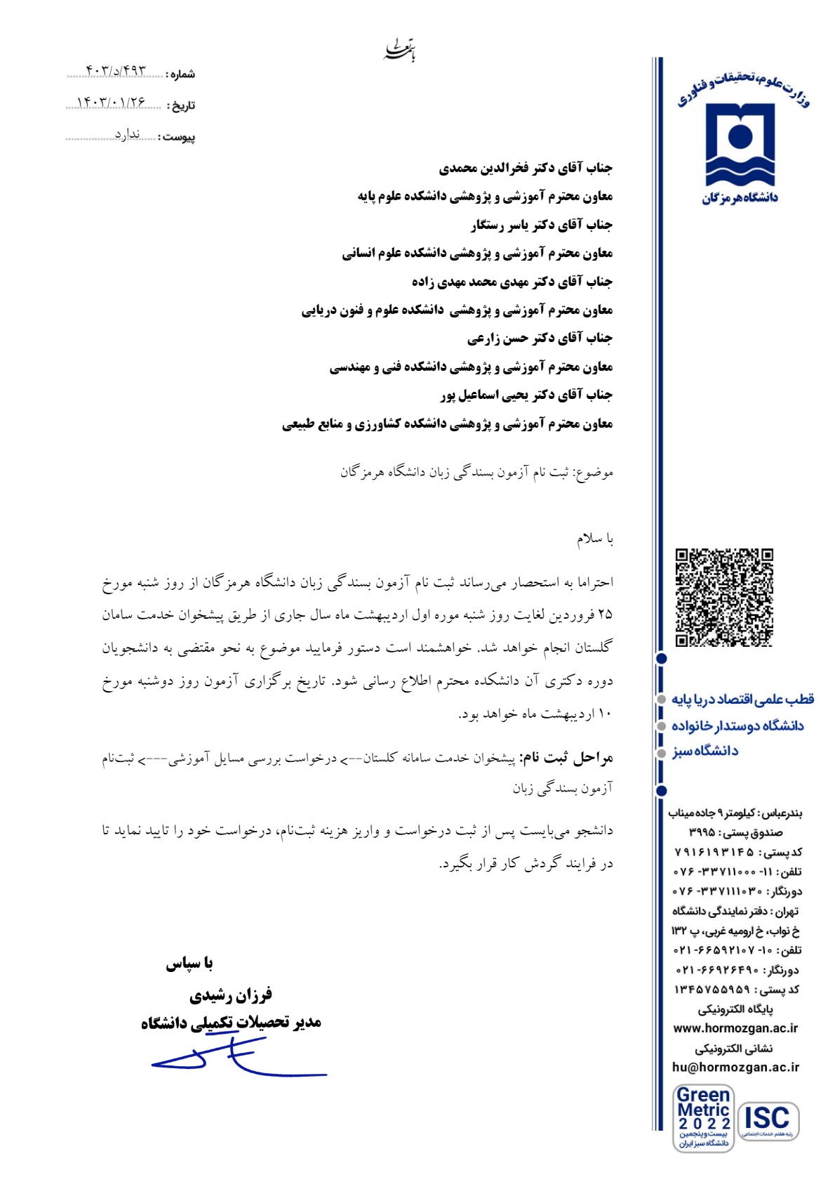 ثبت نام آزمون بسندگی زبان دانشگاه هرمزگان