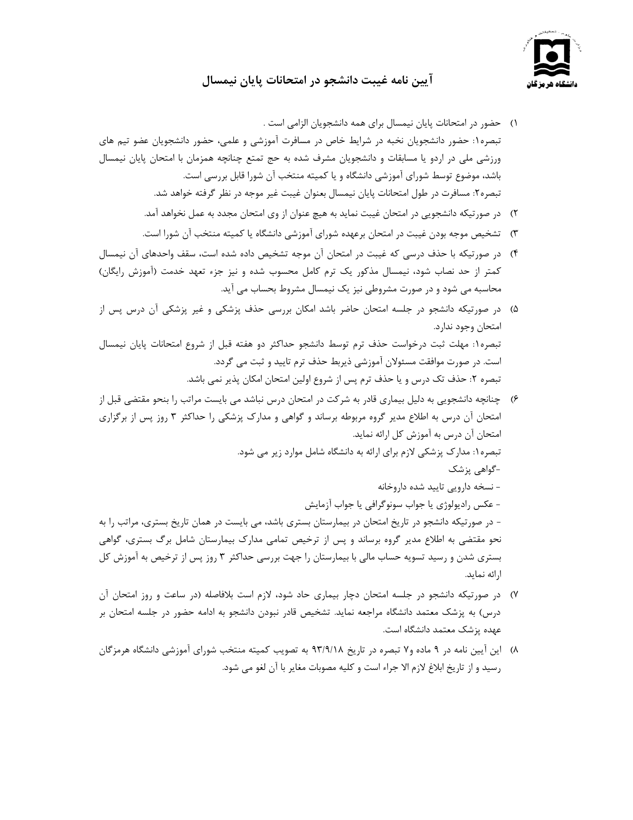 اطلاعیه غیبت دانشجو در امتحانات