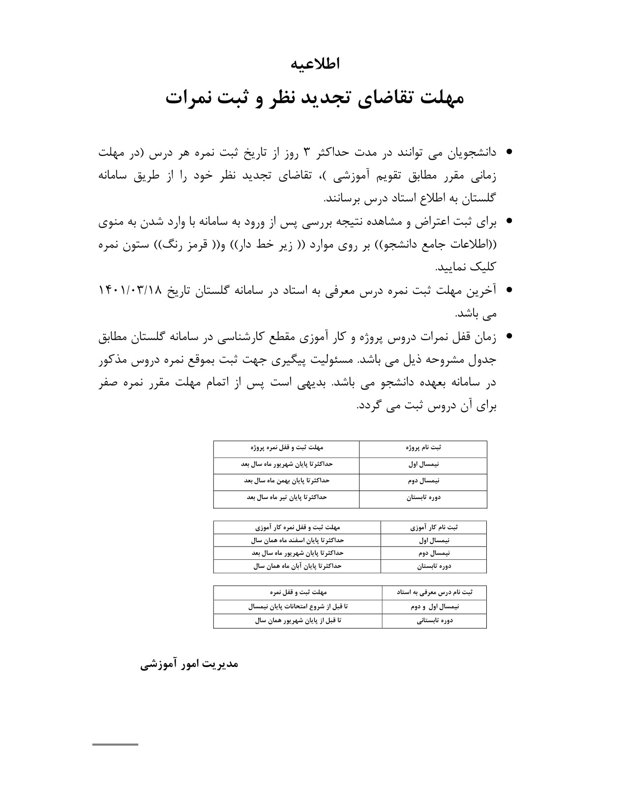 مهلت تجدید نظر و ثبت نمرات
