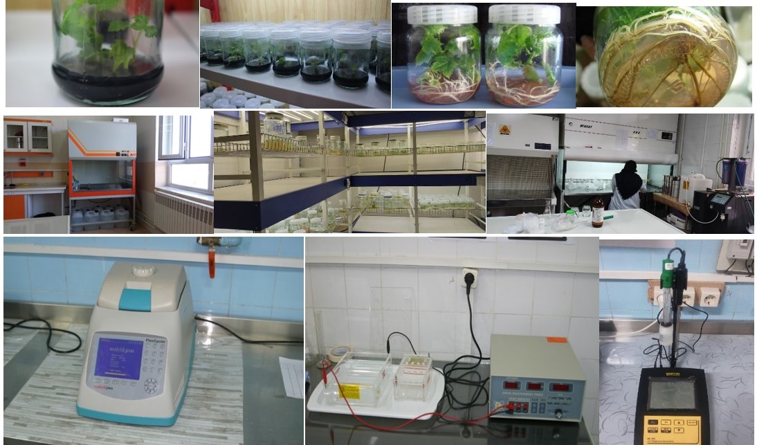 آزمایشگاه به مکانهایی برای شستشوی وسایل آلوده و قراردادن اتوکلاوها و همچنین فضاهاي مستقلي برای استقرار الکتروفورز، انکوباتور، یخچال و فریزر مجهز است و با فراهمشدن امكانات و تجهيزات زير، امكان انجام مطالعات در زمينة كشت بافتهاي گياهي، PCR و نشانگرهاي مولكولي، الکتروفورز، روش های استخراج DNA، RNA و ... مهيّا ميباشد.