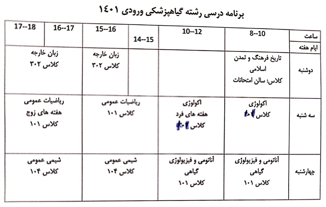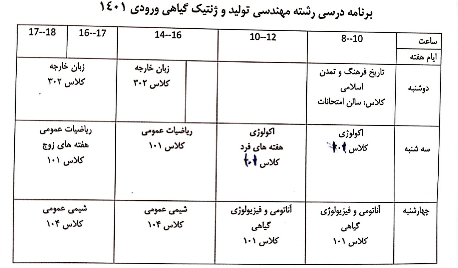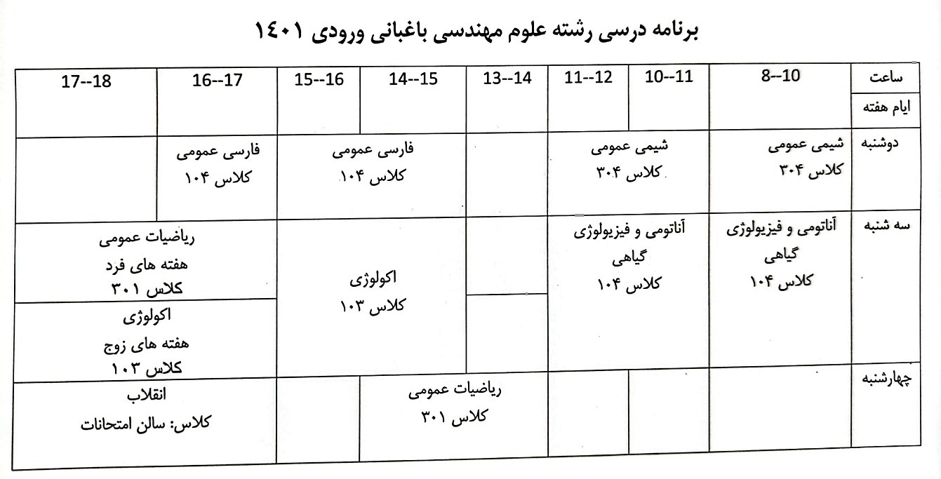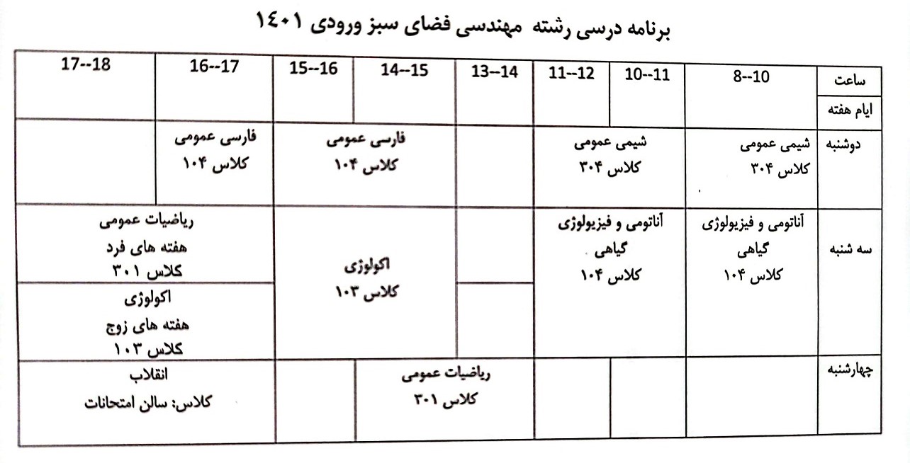برنامه ی هفتگی دانشجویان جدیدالورود به همراه آخرین تغییرات