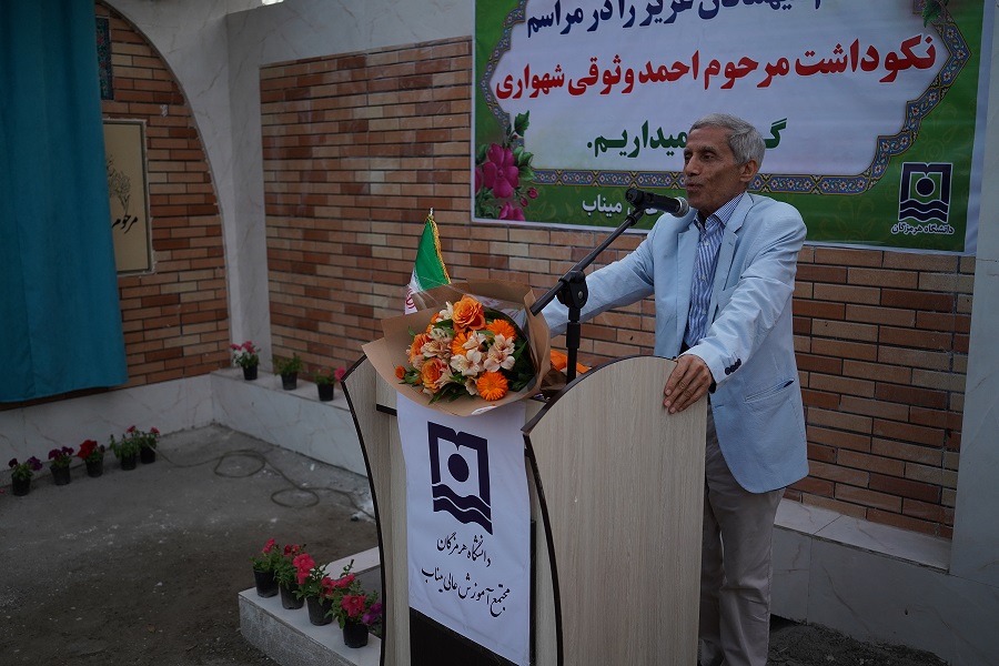 به منظور نکوداشت و پاسداشت خدمات خداپسندانه و تاثیر گذار مرحوم احمد وثوقی شهواری بنیان گذار باغ معروف کاشی ( که در حال حاضر توسط فرزند ایشان پروفسور منوچهر وثوقی جهت انجام امور فرهنگی، آموزشی و پژوهشی وقف مجتمع آموزش عالی میناب گردیده است) مراسمی در محل این باغ با حضور خانواده وثوقی شهواری و فامیل های وابسته، اعضای هیئت موسس انجمن خیریه حامیان مجتمع آموزش عالی میناب، معاون محترم آموزشی دانشگاه هرمزگان، رئیس، معاون آموزشی و پژوهشی، کارکنان و اعضای هیات علمی مجتمع آموزش عالی میناب برگزار شد.