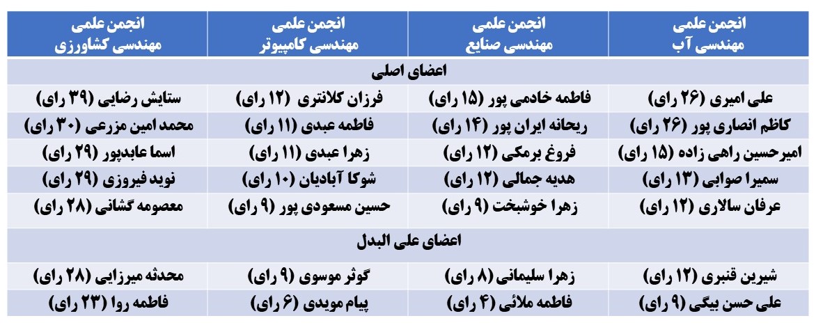 نتایج انتخابات انجمن های علمی